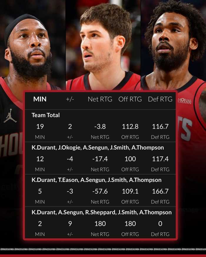 火箭季后赛首发阵容数据曝光,搭配谢泼德效率最高